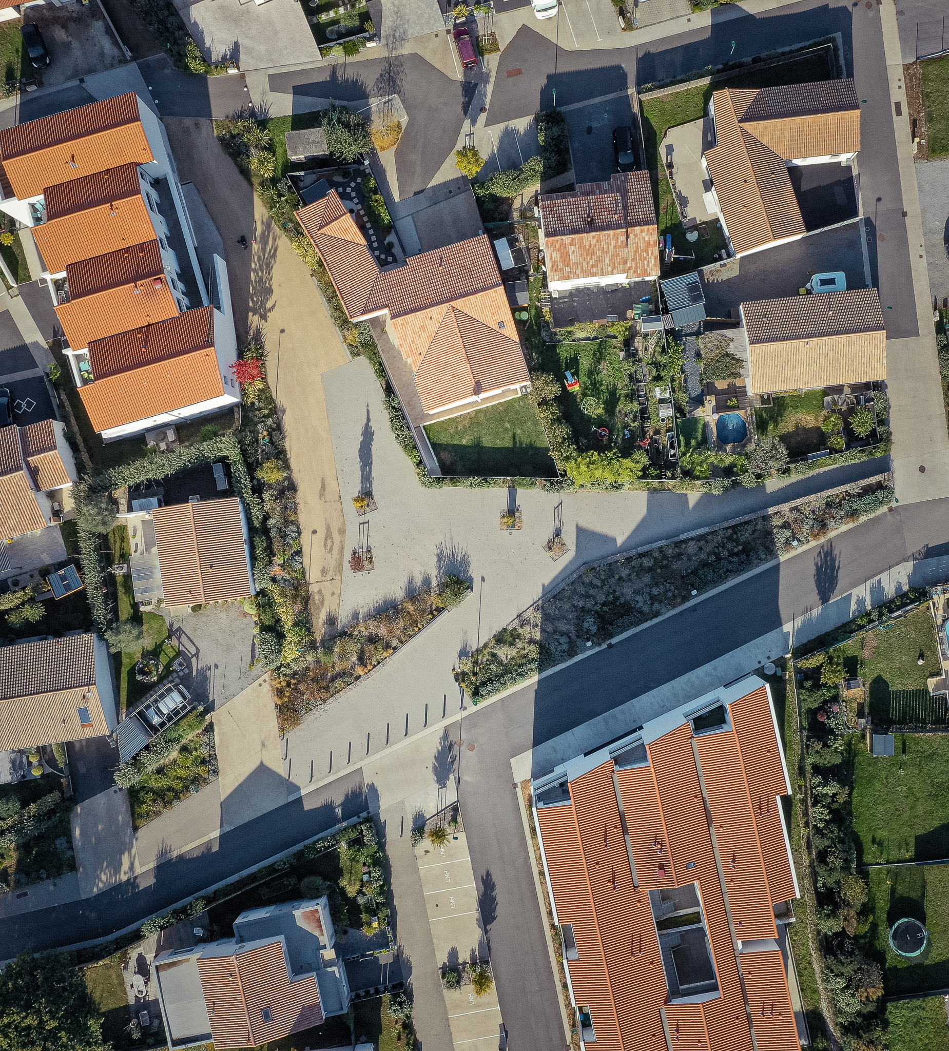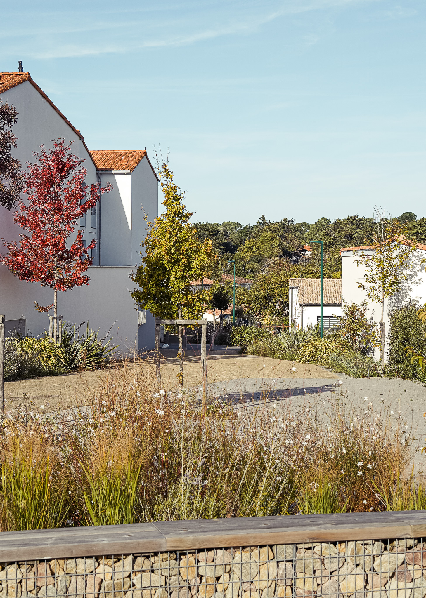 Composé de 92 maisons individuelles (lots libres) et de 2 ilots dédiés à l’habitat locatif social, le quartier s’anime autour d’une placette centrale où convergent les sentes piétonnes.