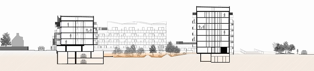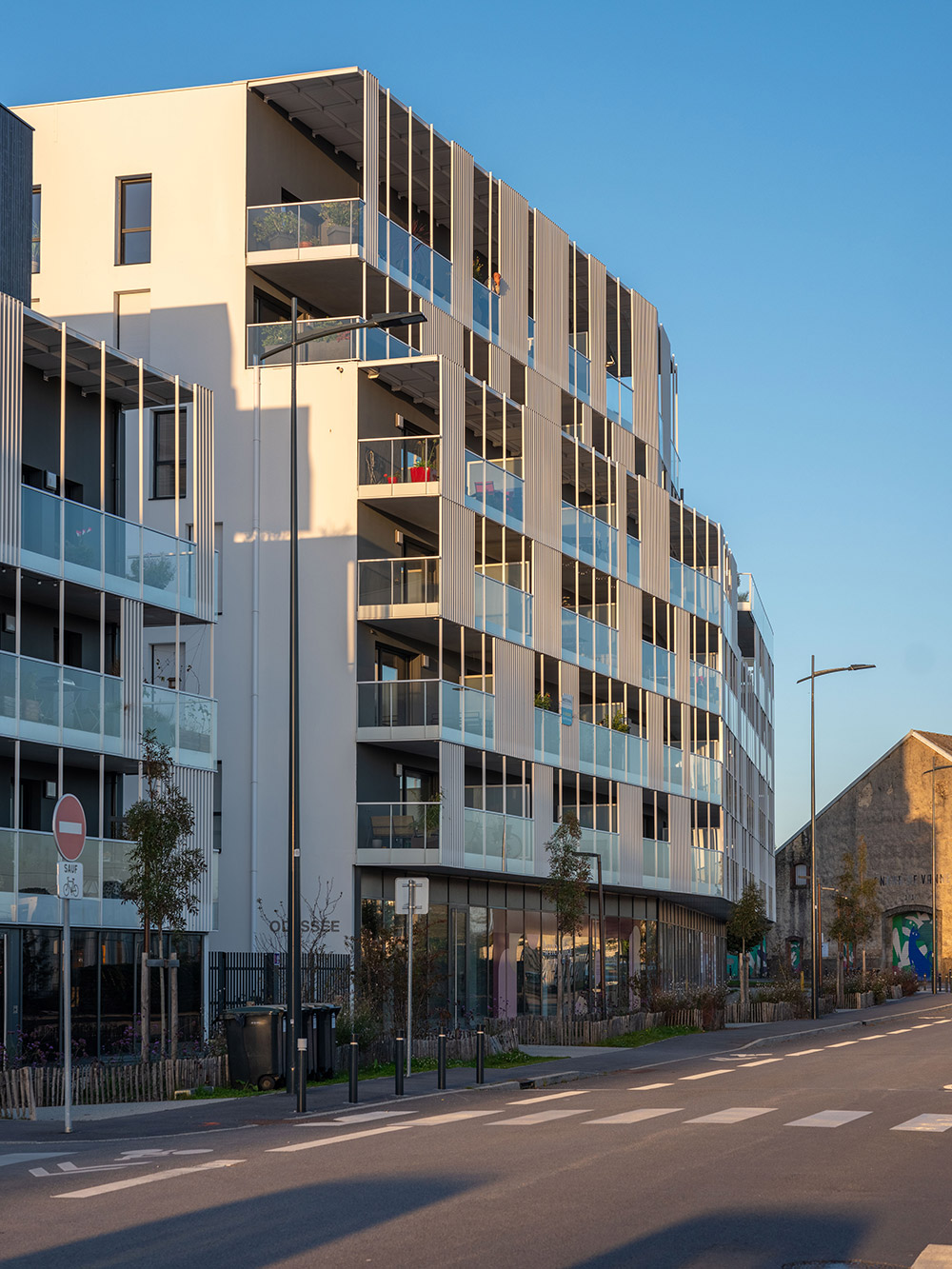 Développée sur 7 niveaux, cette architecture urbaine construite autour d’un cœur d’ilot paysager, est constituée de 136 logements. Tous les appartements bénéficient de doubles ou triples orientations afin de maximiser les apports en lumière naturelle.